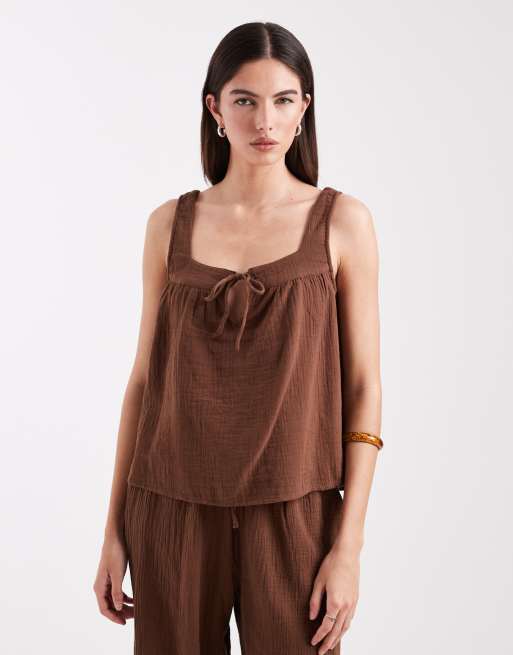 Only - Top d'ensemble sans manches à encolure carrée en gaze - Marron