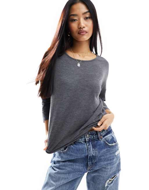 ONLY - Top manches 3/4 et col dégagé - Anthracite chiné