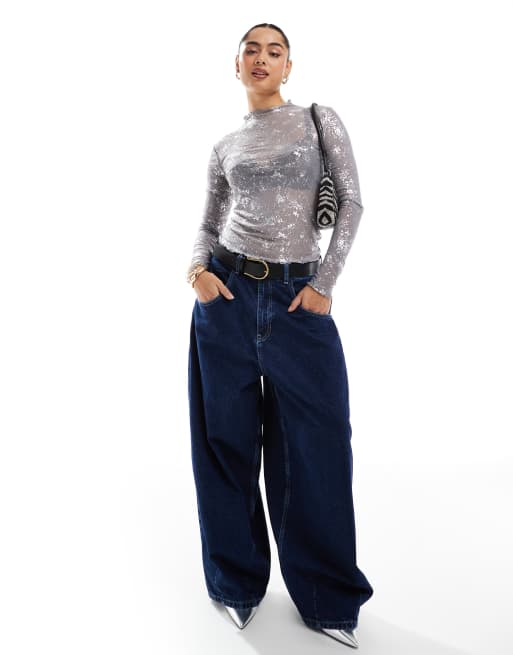 ONLY - Top transparent à bord ondulé et imprimé métallisé - Argent