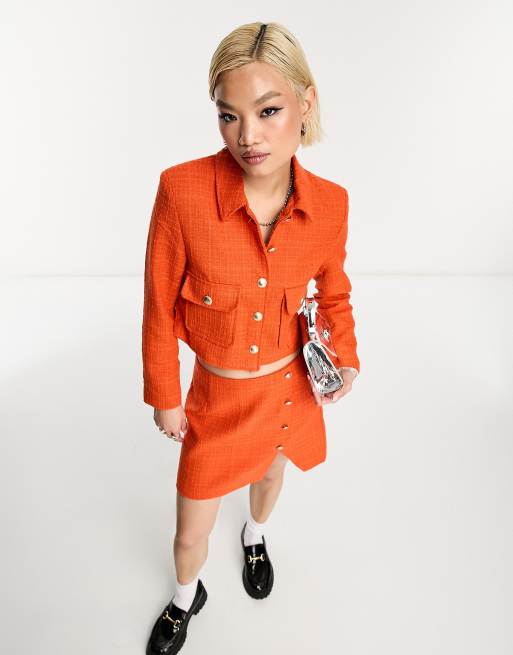 Only - Veste d'ensemble boutonnée en tweed - Orange