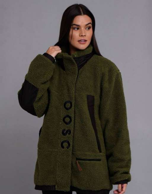 OOSC - Veste polaire en imitation peau de mouton - Kaki/noir