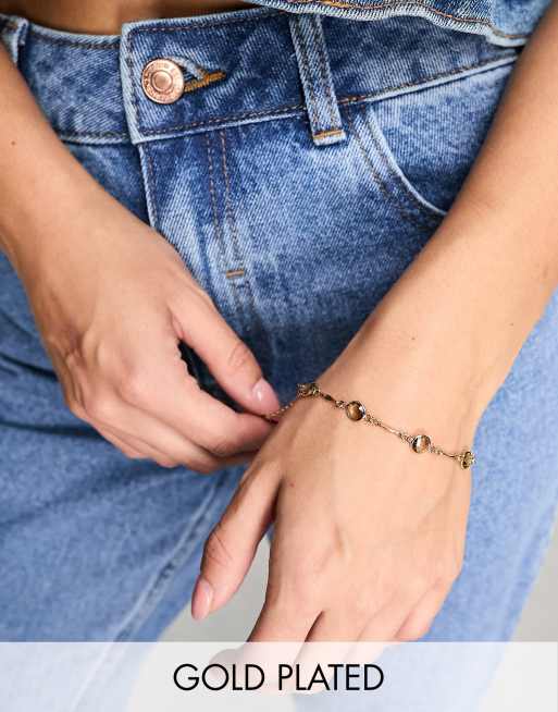 Orelia - Bracelet orné de pierres semi-précieuses en plaqué or 18 carats avec barre en T