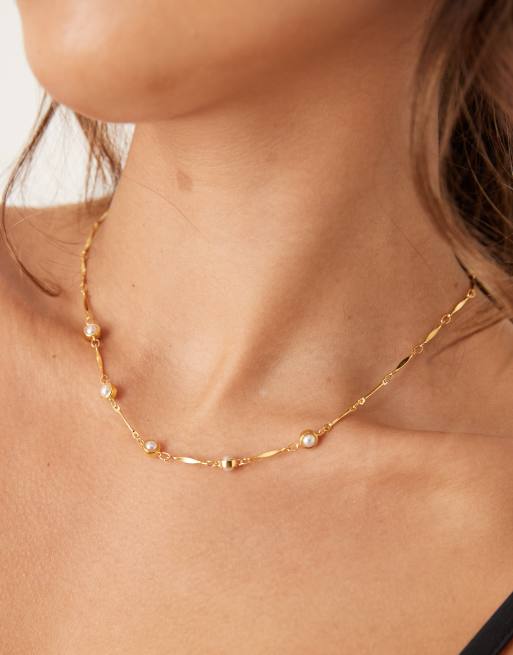 Orelia - Collier en plaqué or 18 carats à perles et maillons barres