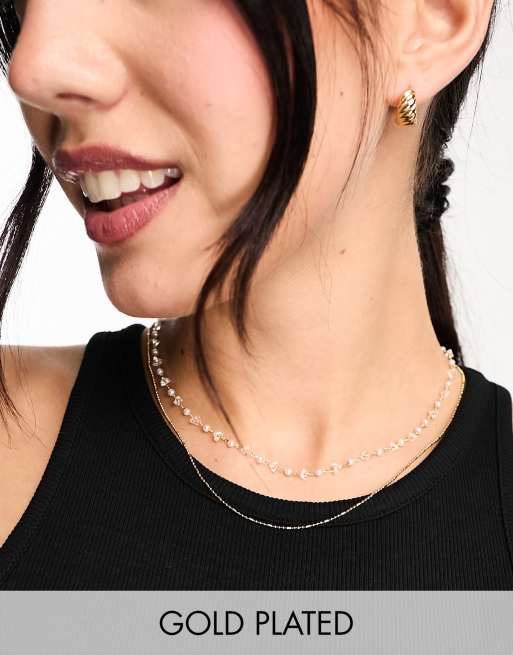 Orelia - Collier multi-rangs en chaîne plaquée or 18 carats avec cristaux et perles
