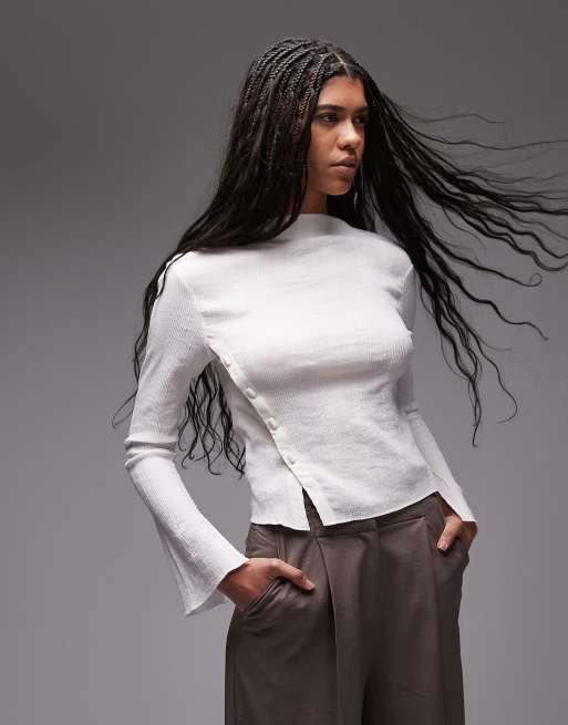 & Other Stories - Blouse texturée et transparente avec boutons asymétriques à manches longues - Blanc
