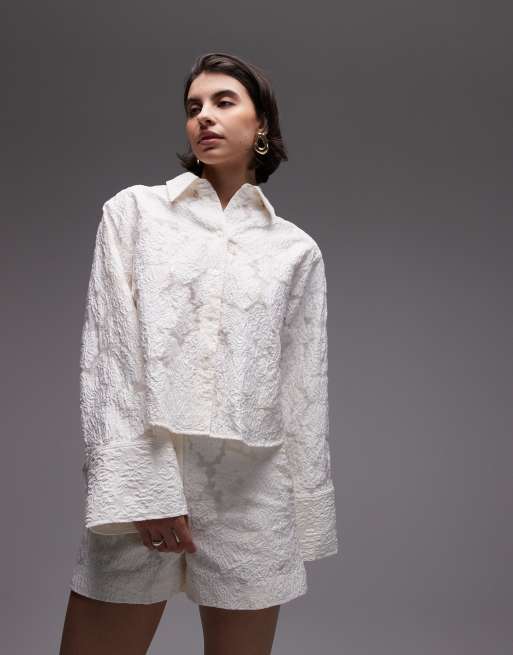 & Other Stories - Chemise d'ensemble en dentelle transparente effet jacquard - Blanc