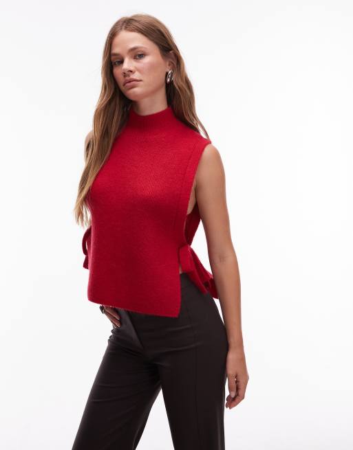 & Other Stories - Débardeur maille de laine et mohair avec col montant et liens sur le côté - Rouge