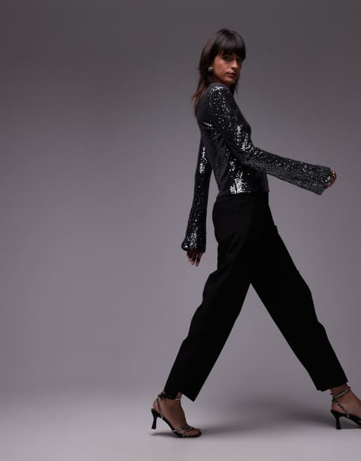 & Other Stories - Ensemble top à sequins et pantalon évasé à franges - Argenté foncé