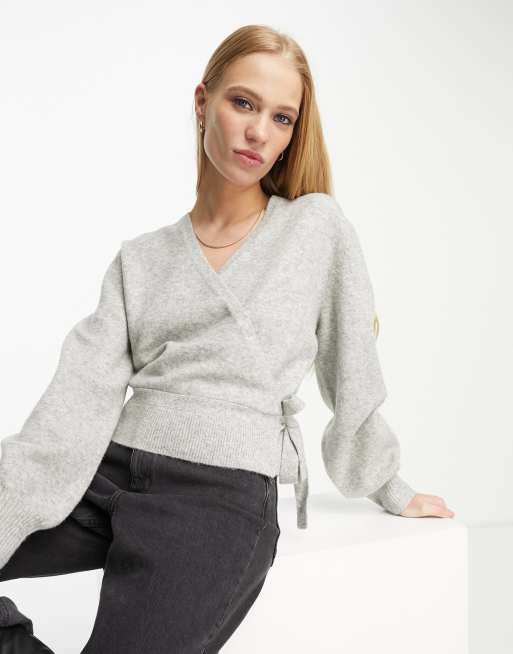 & Other Stories - Gilet cache-cœur - Gris chiné clair