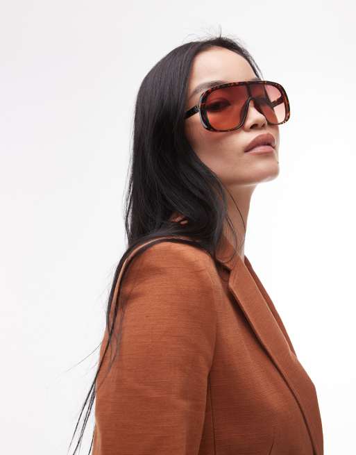 & Other Stories - Lunettes de soleil aviateur oversize style rétro à verres ton sur ton - Écaille de tortue