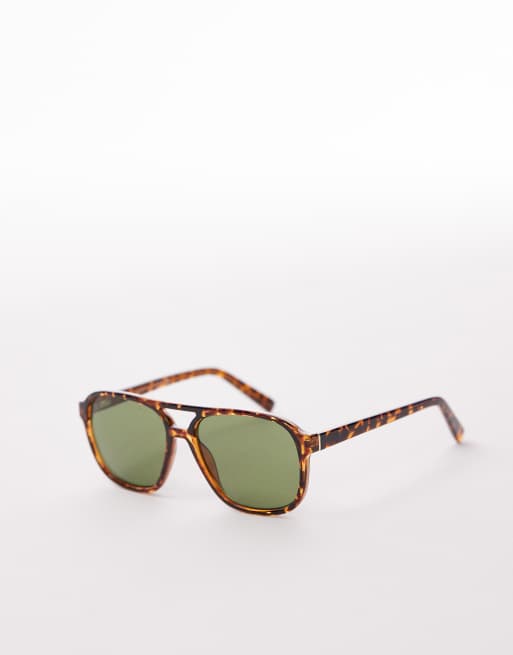 & Other Stories - Lunettes de soleil aviateur rétro à verres vert foncé - Marron écaille de tortue