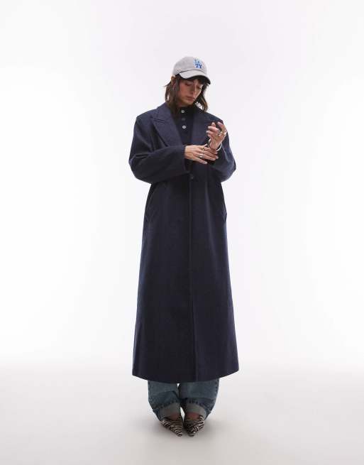 & Other Stories - Manteau droit et long en laine mélangée à chevrons - Bleu marine et blanc