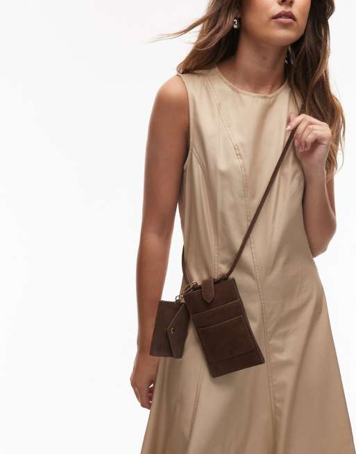 & Other Stories - Pochette pour téléphone en daim et cuir véritable avec porte-monnaie attaché - Marron foncé