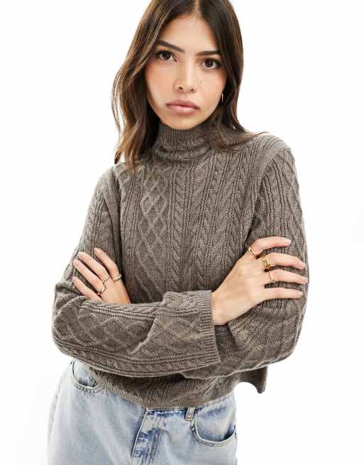& Other Stories - Pull court en maille torsadée de laine mérinos - Taupe