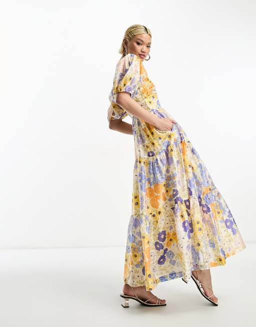 & Other Stories - Robe bustier mi-longue en lin mélangé à imprimé fleuri