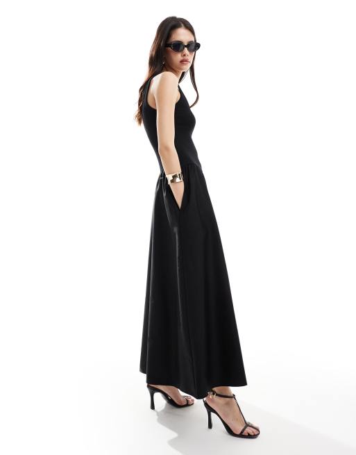 & Other Stories - Robe longue à partie tissée et partie en jersey avec ourlet volumineux - Noir