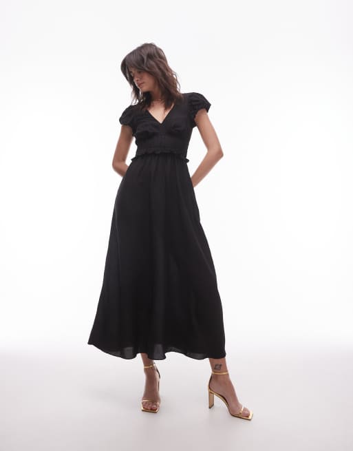 & Other Stories - Robe longue avec manches et ourlet volantés - Noir