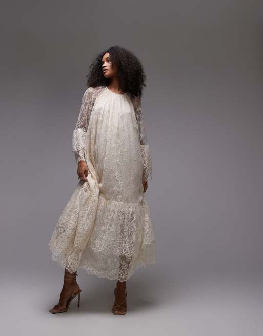 & Other Stories - Robe longue en dentelle transparente à ourlet volumineux volanté - Crème