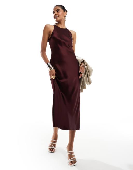 & Other Stories - Robe mi-longue coupée en biais en satin - Bordeaux