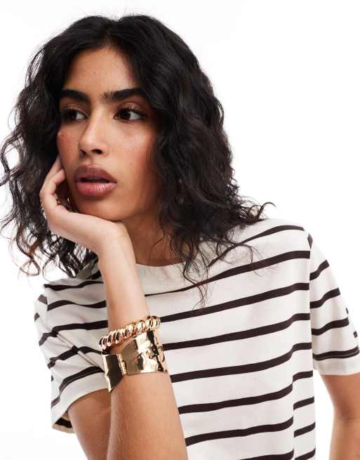 & Other Stories - T-shirt décontracté à manches courtes - Blanc et marron rayé