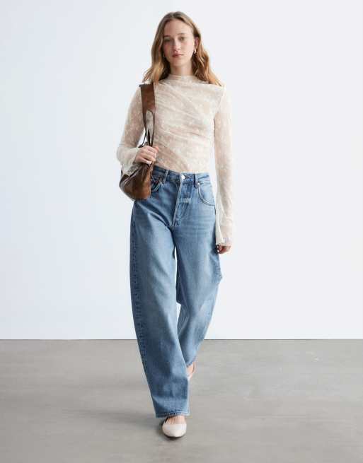 & Other Stories - Top en dentelle à manches longues et taille drapée - Beige