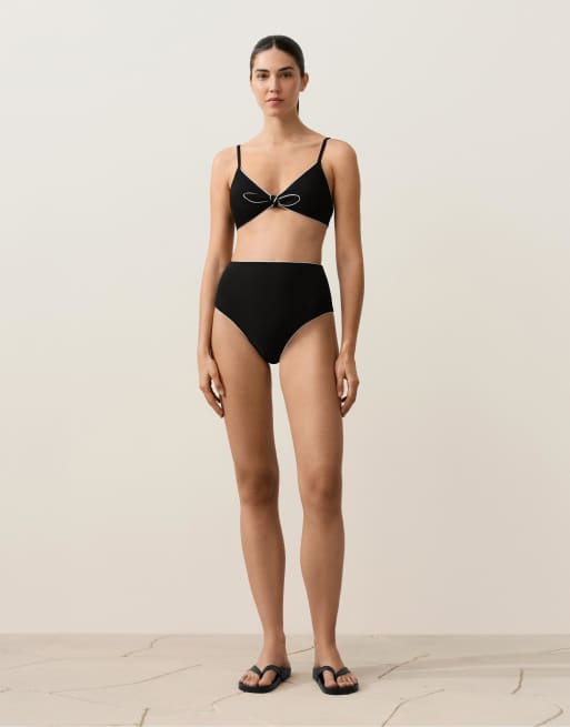 Oysho - Bas de bikini classique à taille haute et liserés - Noir