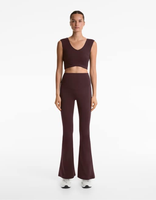 OYSHO - Comfortlux - Pantalon évasé à taille ultra haute et poches - Marron