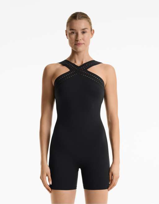 Oysho - Compressive - Combishort à détails ajourés - Noir