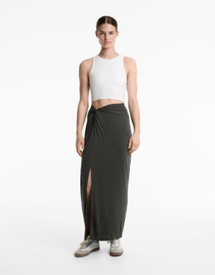 Oysho - Jupe mi-longue fluide nouée en modal mélangé - Anthracite