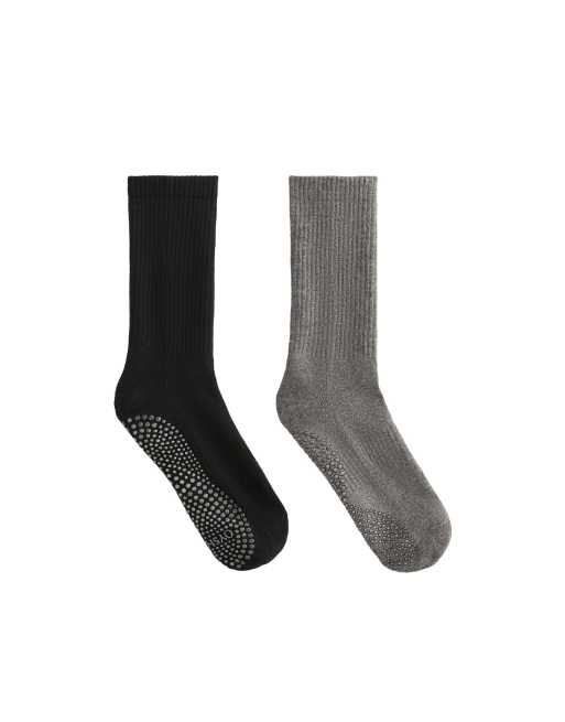 Oysho - Lot de 2 paires de chaussettes de yoga et pilates classiques en coton mélangé - Noir