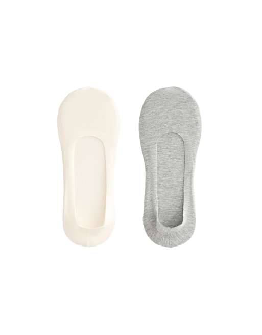 Oysho - Lot de 2 paires de chaussettes invisibles coupe mi-haute en coton mélangé - Écru pâle