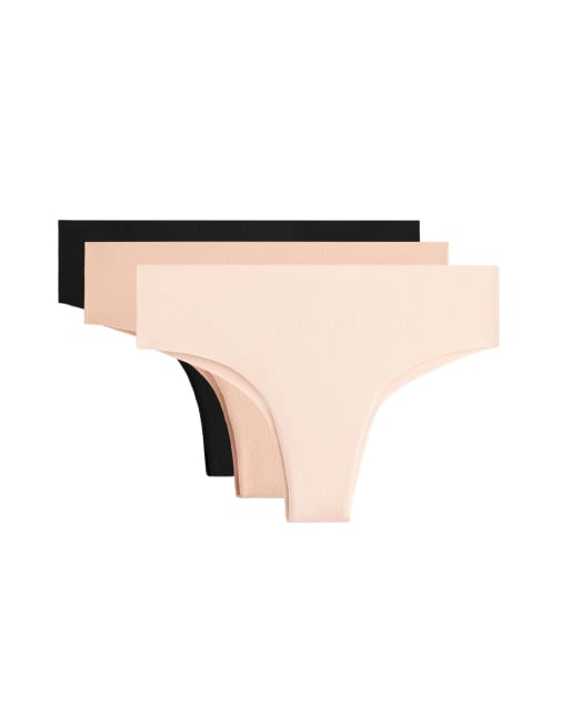 Oysho - Lot de 3 culottes brésiliennes invisibles en coton mélangé - Noir