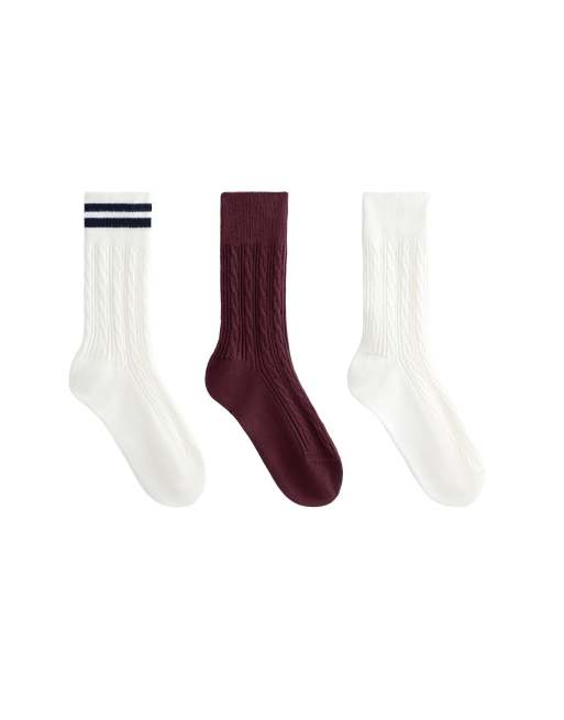 Oysho - Lot de 3 paires de chaussettes classiques en coton mélangé - Rouge foncé et blanc