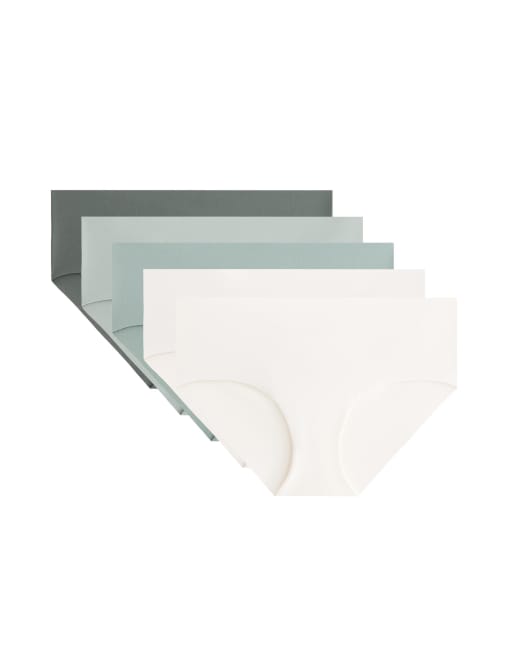 OYSHO - Lot de 5 culottes invisibles à taille basse en polyamide mélangé - Gris kaki