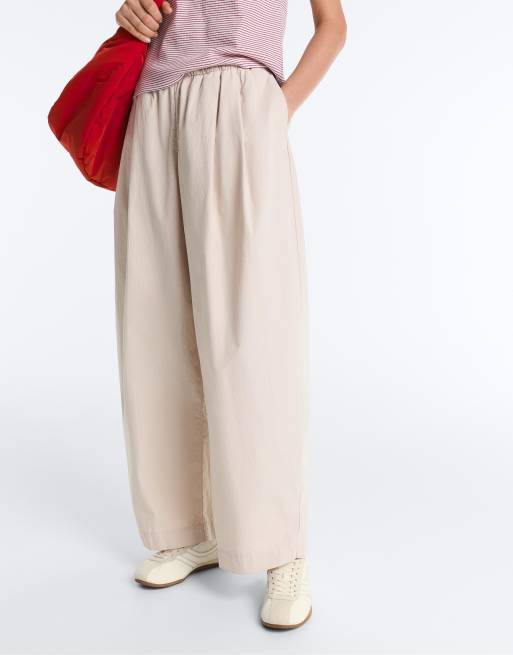 OYSHO - Pantalon 100 % coton à pinces coupe ajustée - Vison pâle