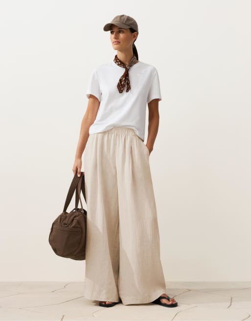 OYSHO - Pantalon ample en pur lin - Sable chiné