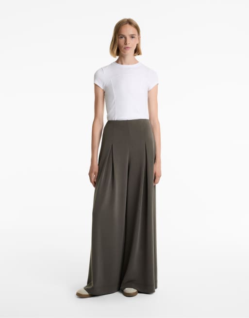 OYSHO - Pantalon large à plis en modal doux - Noir