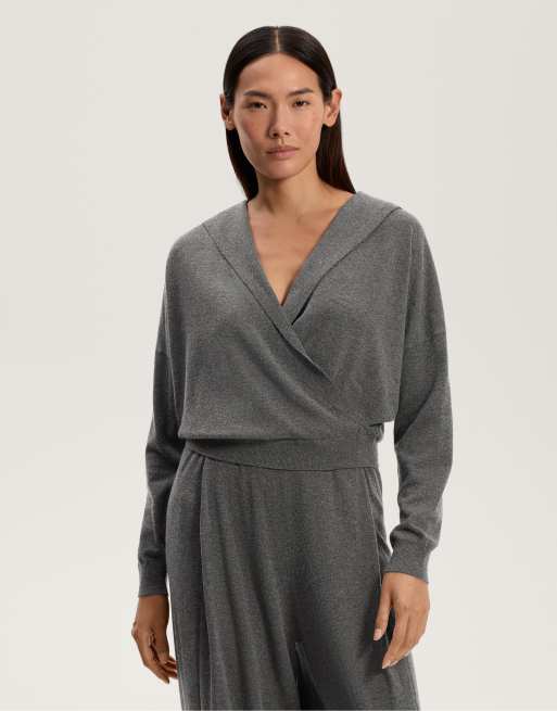 OYSHO - Pull croisé en maille à capuche - Gris