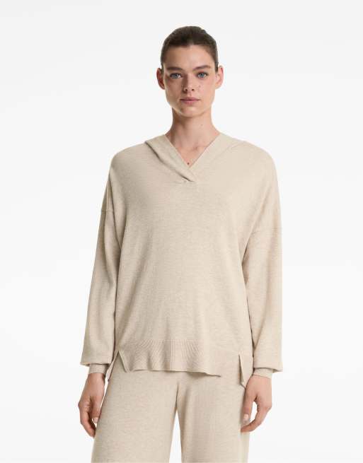 OYSHO - Sweat à capuche en maille fine - Taupe