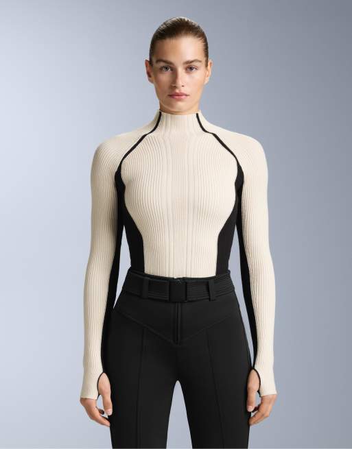 OYSHO - T-shirt de première couche en maille côtelée à détails contrastants - Noir