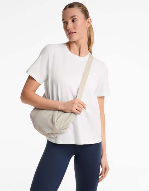 Oysho - T-shirt manches courtes en coton mélangé - Blanc cassé