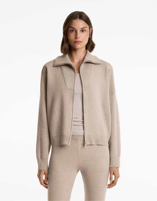 OYSHO - Veste en maille à col côtelé - Vison pâle