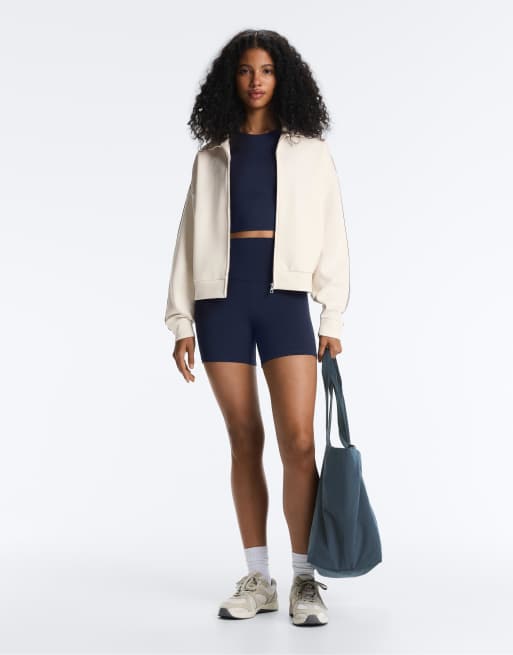 Oysho - Veste en piqué de coton avec bande latérale à chevrons - Écru pâle