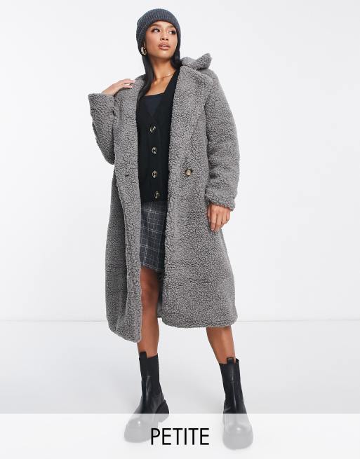 Parisian Petite - Manteau oversize à double boutonnage en imitation peau de mouton - Gris anthracite