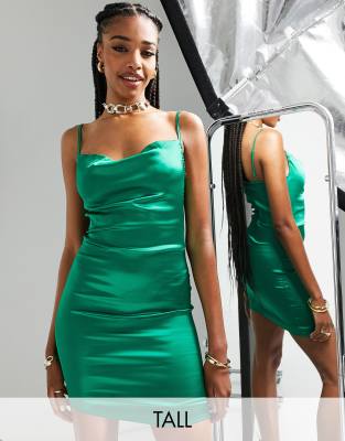 Parisian Tall - Robe courte à fines bretelles et col bénitier effet satin - Vert