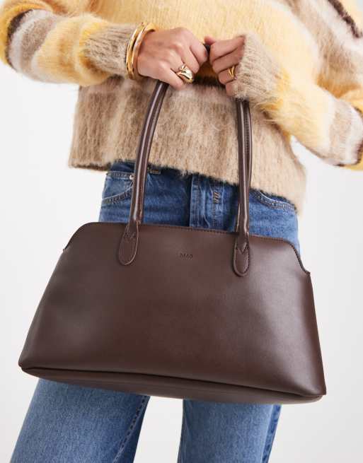 PASQ - Sac trapèze porté épaule avec deux anses fines - Marron foncé