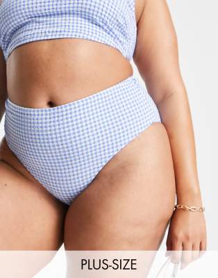 Peek & Beau Curve - Exclusivité - Bas de bikini taille haute texturé à carreaux vichy - Bleu