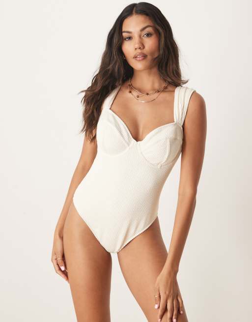 Peek & Beau - Maillot 1 pièce à armatures et bretelles froncées - Ivoire