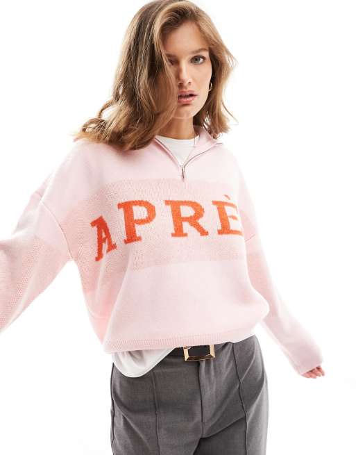 Pieces Petite - Pull à col zippé et slogan - Rouge et rose