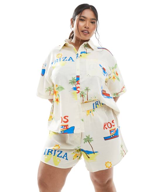 Pieces Curve - Ensemble chemise coupe carrée et short à imprimé inscriptions